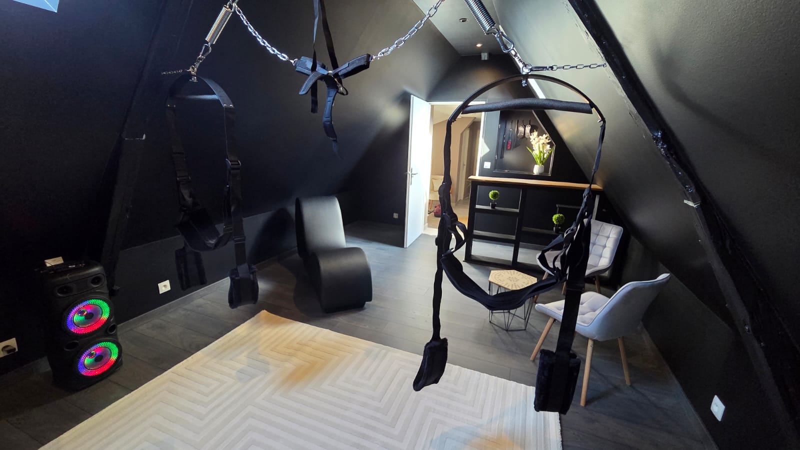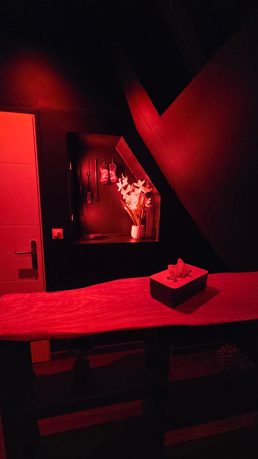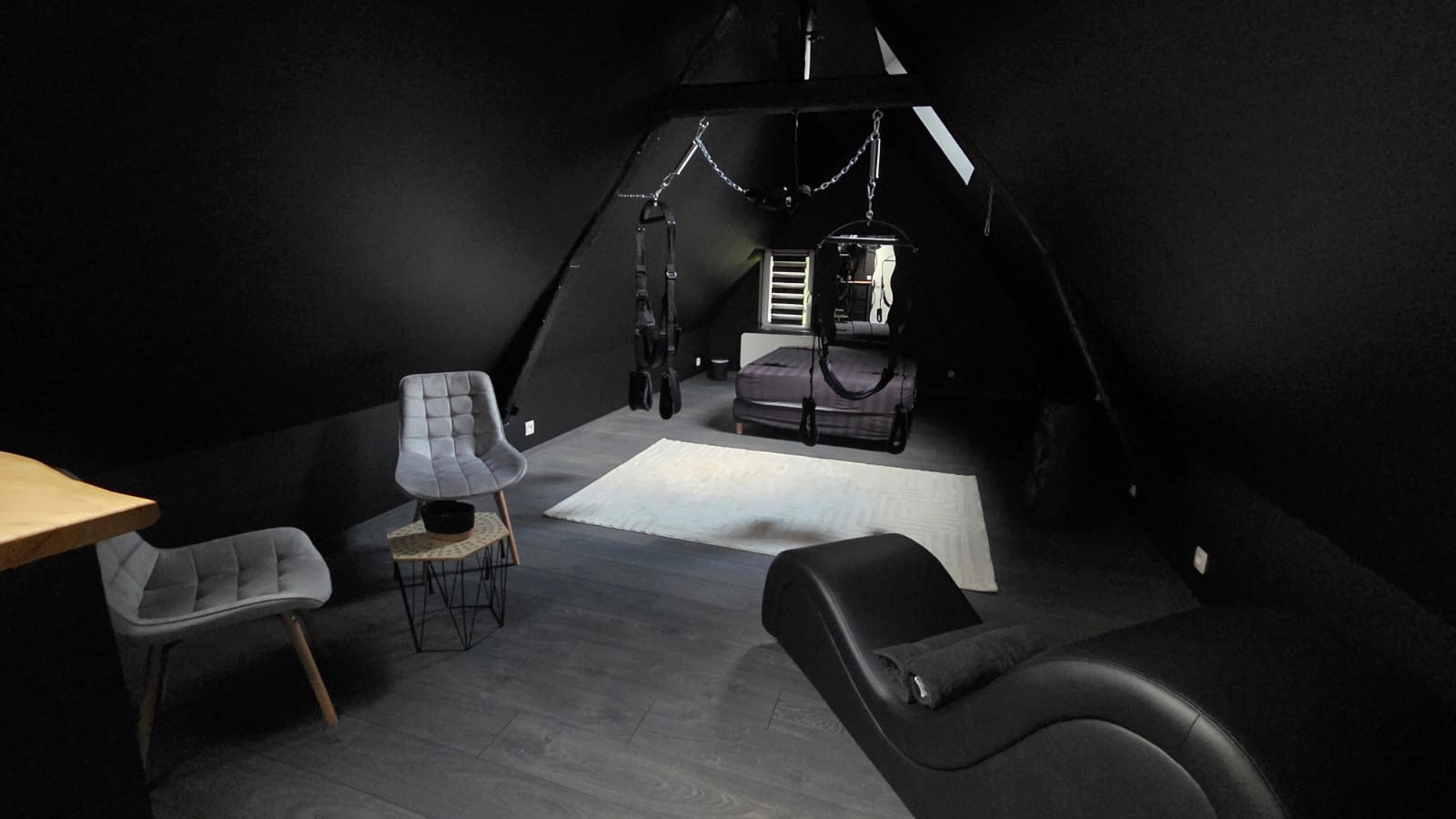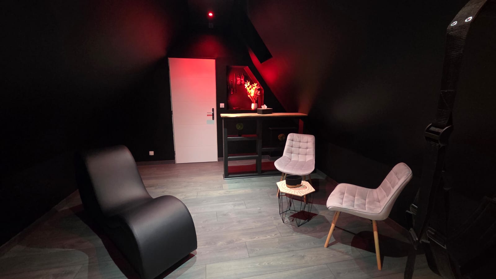 Cet espace est parfait pour vos nuits les plus passionnées. Laissez vous tenter par le mystère, l’élégance et le frisson de l’interdit, et faites de votre séjour chez nous un souvenir inoubliable, gravé dans le noir.