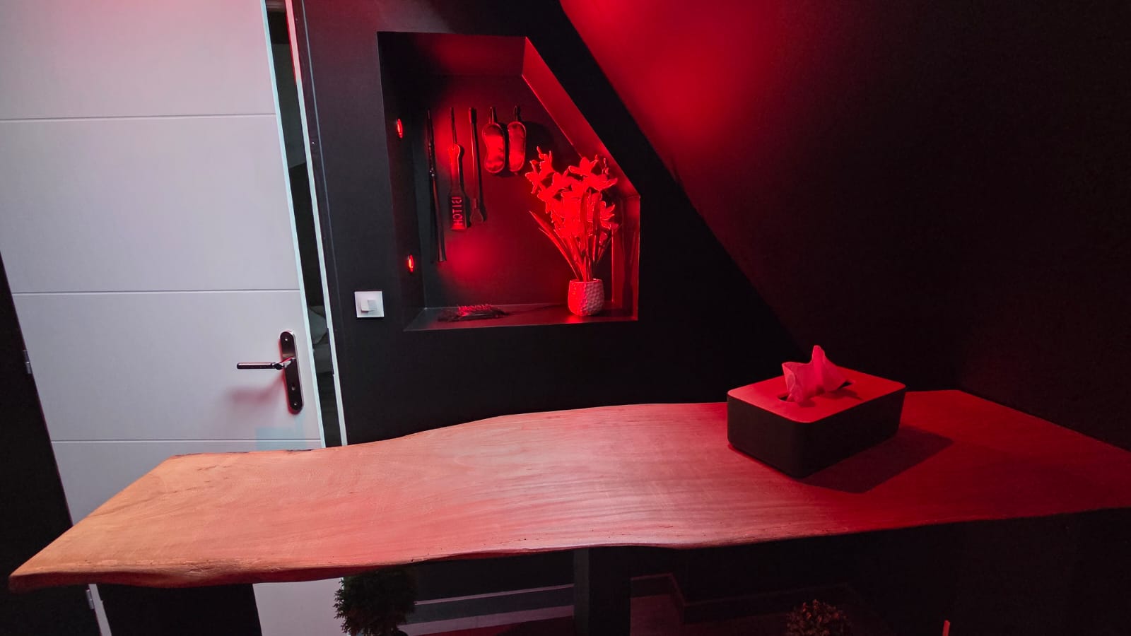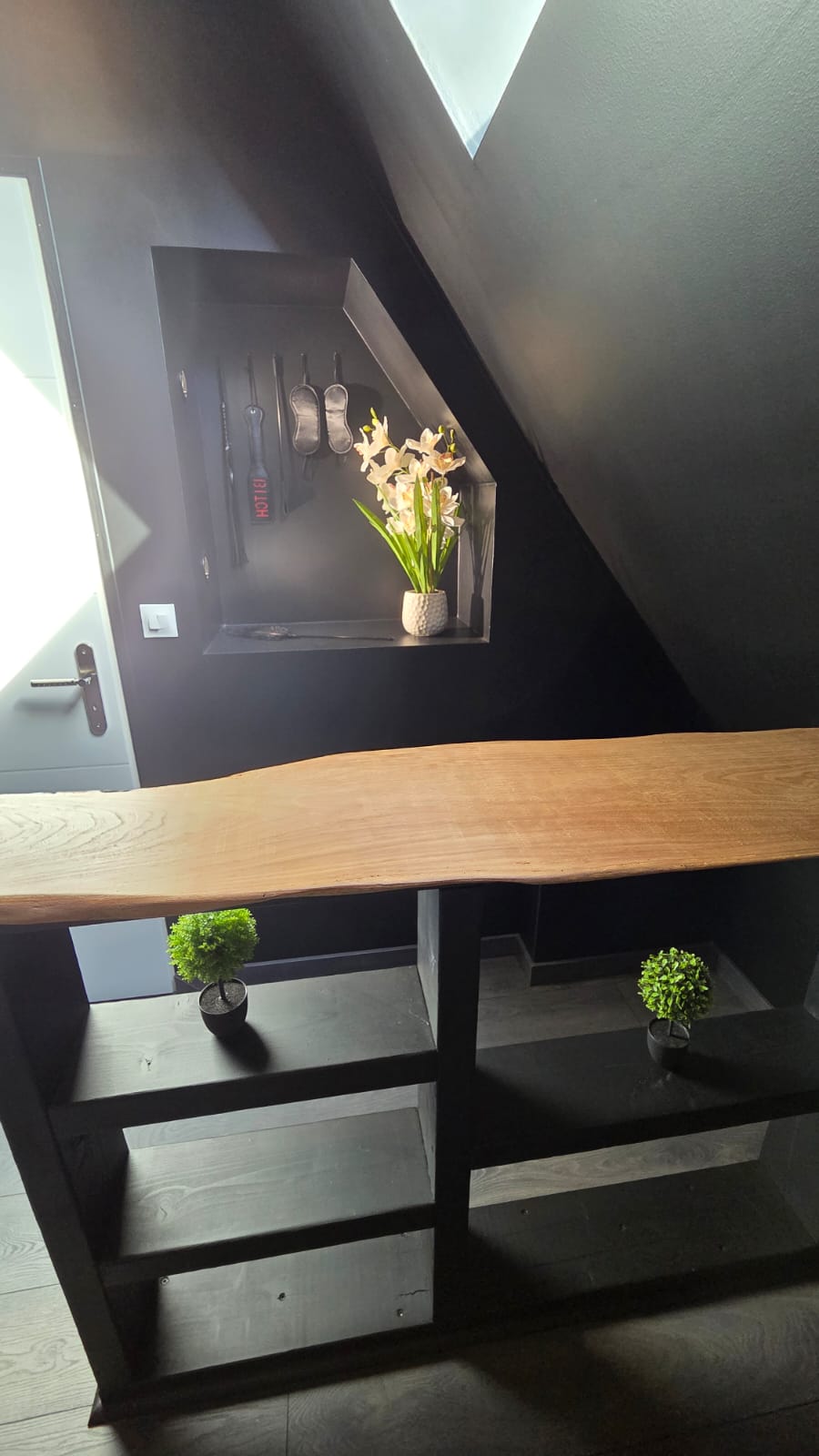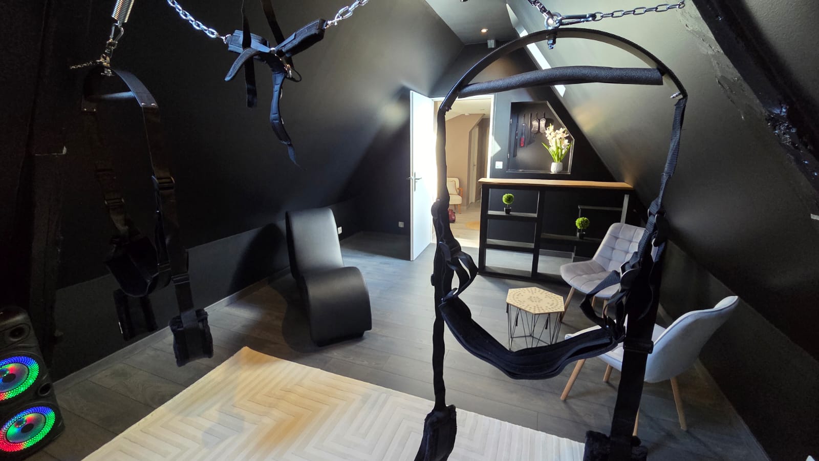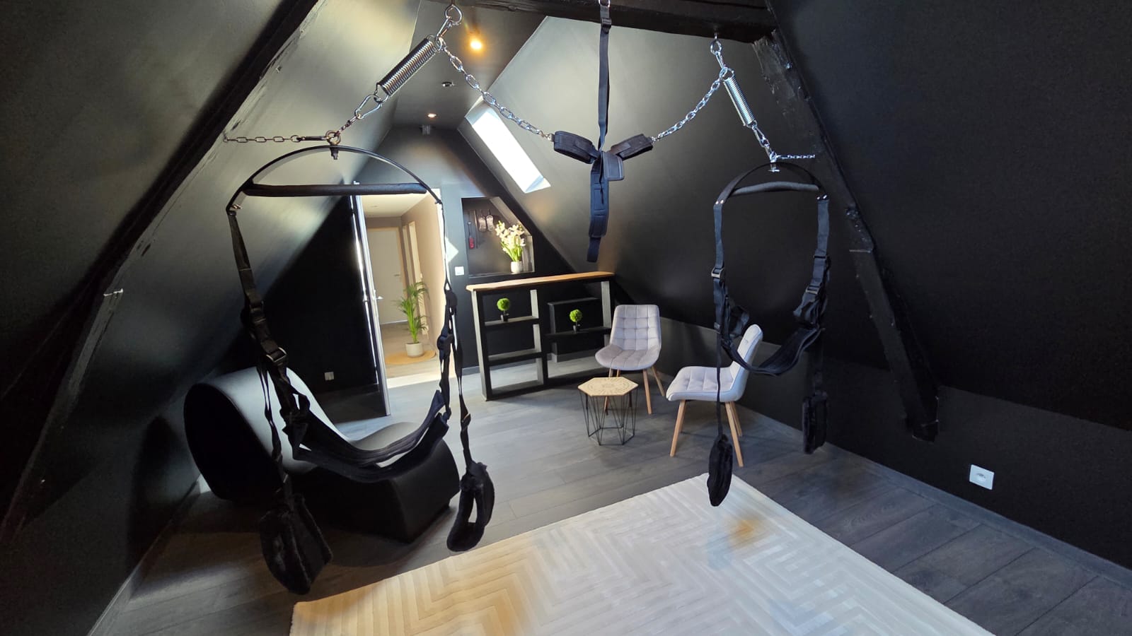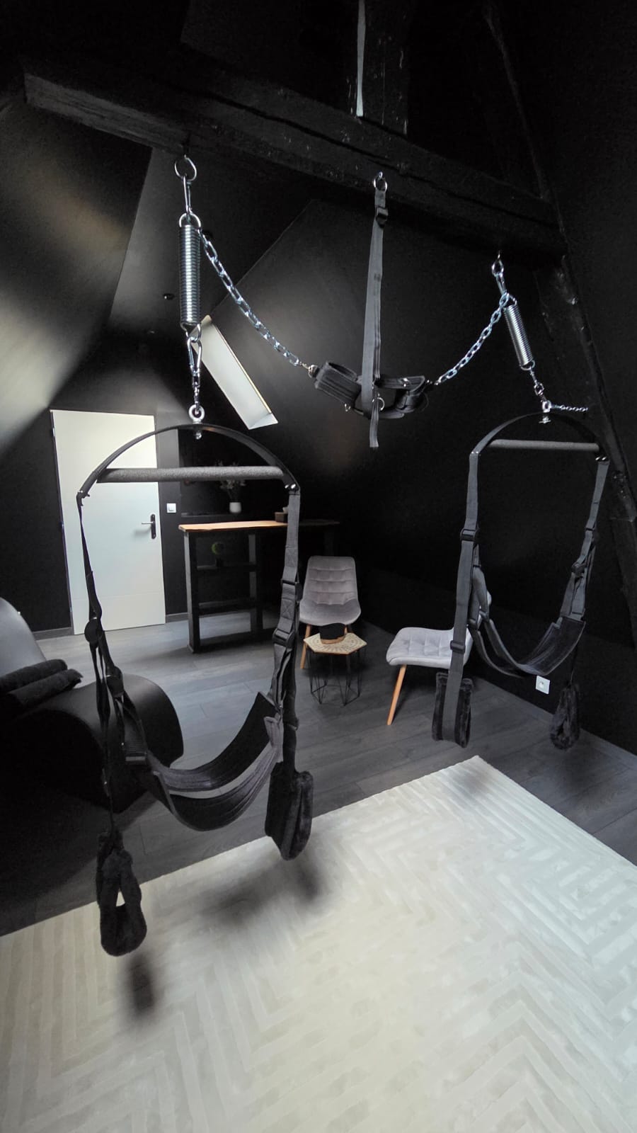 Cet espace est parfait pour vos nuits les plus passionnées. Laissez vous tenter par le mystère, l’élégance et le frisson de l’interdit, et faites de votre séjour chez nous un souvenir inoubliable, gravé dans le noir.
