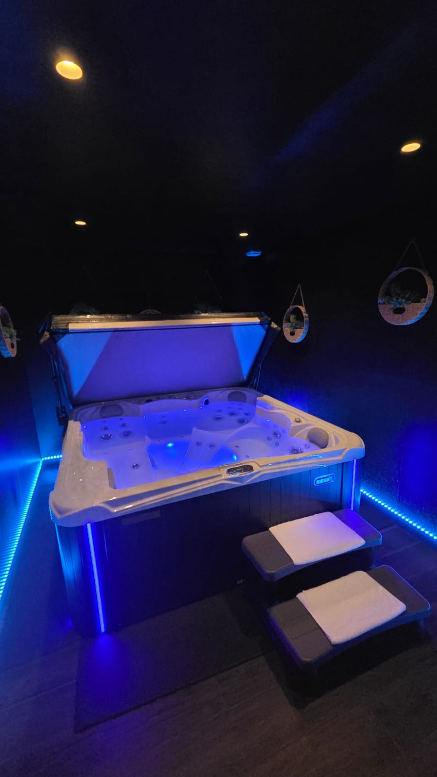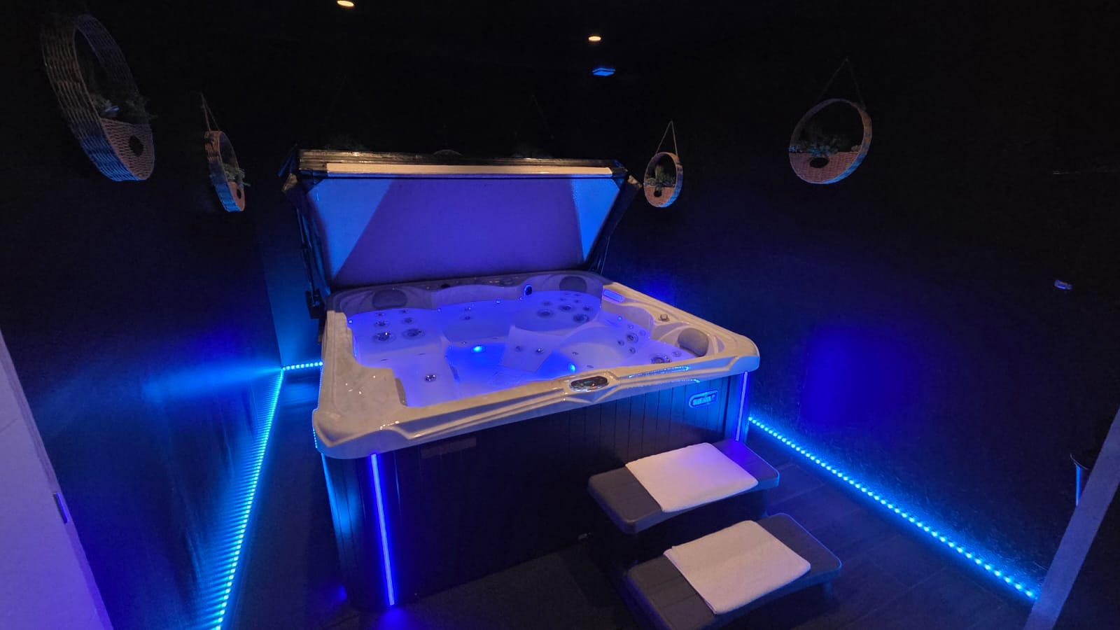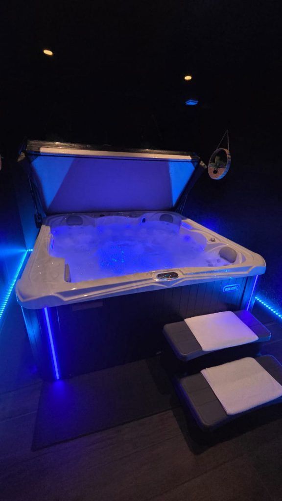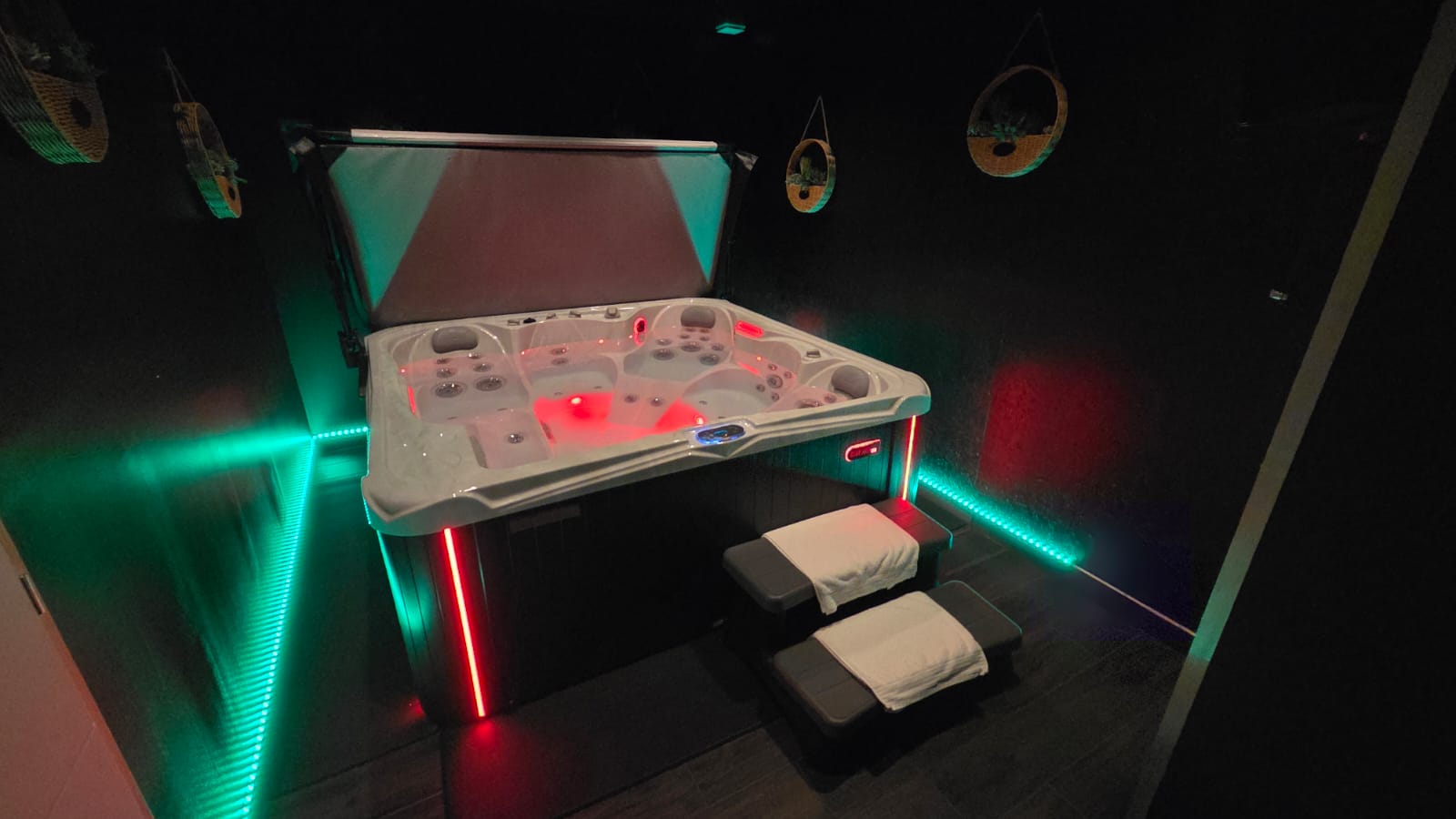 Entrez dans un cocon de bien être où le temps s’arrête. Notre espace jacuzzi a été conçu comme une suite sensorielle privée, avec ses murs profonds et son éclairage entièrement personnalisable.