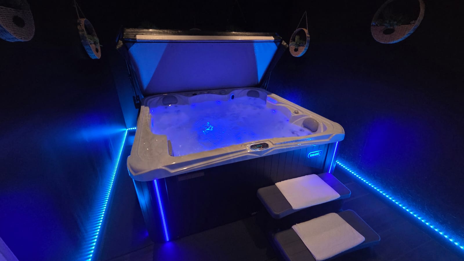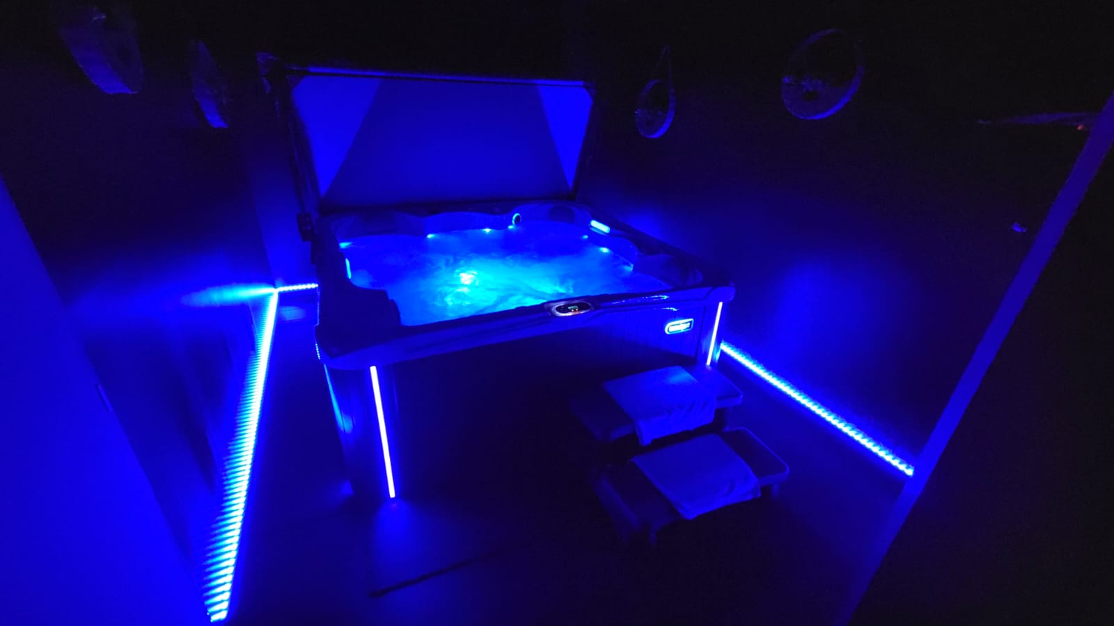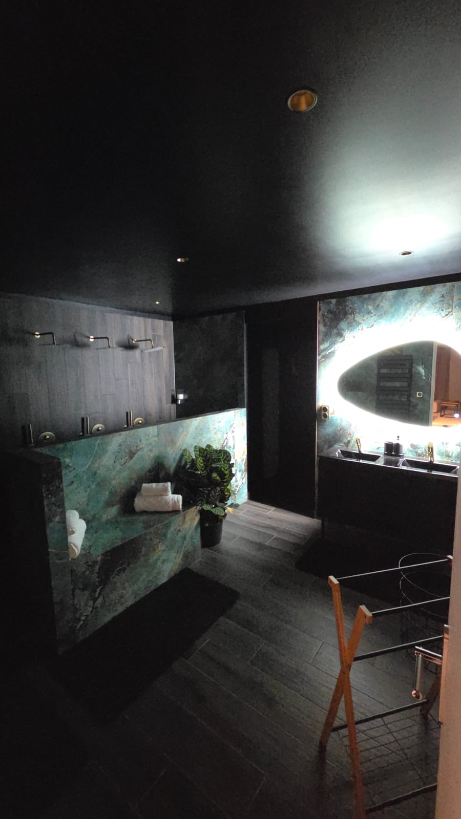 Entrez dans un cocon de bien être où le temps s’arrête. Notre espace jacuzzi a été conçu comme une suite sensorielle privée, avec ses murs profonds et son éclairage entièrement personnalisable.