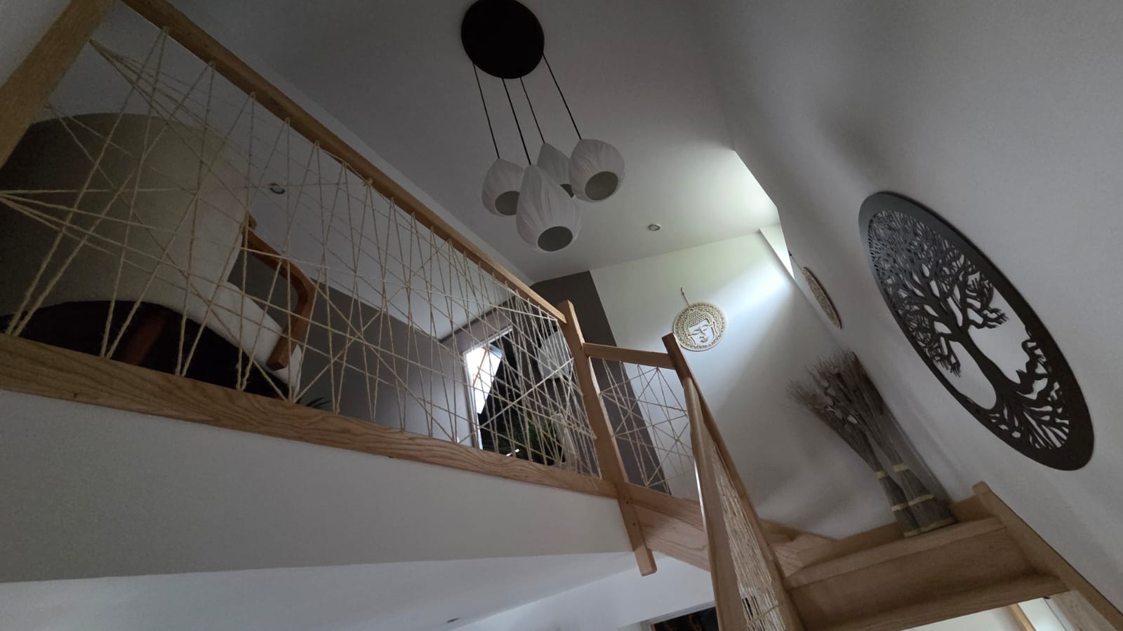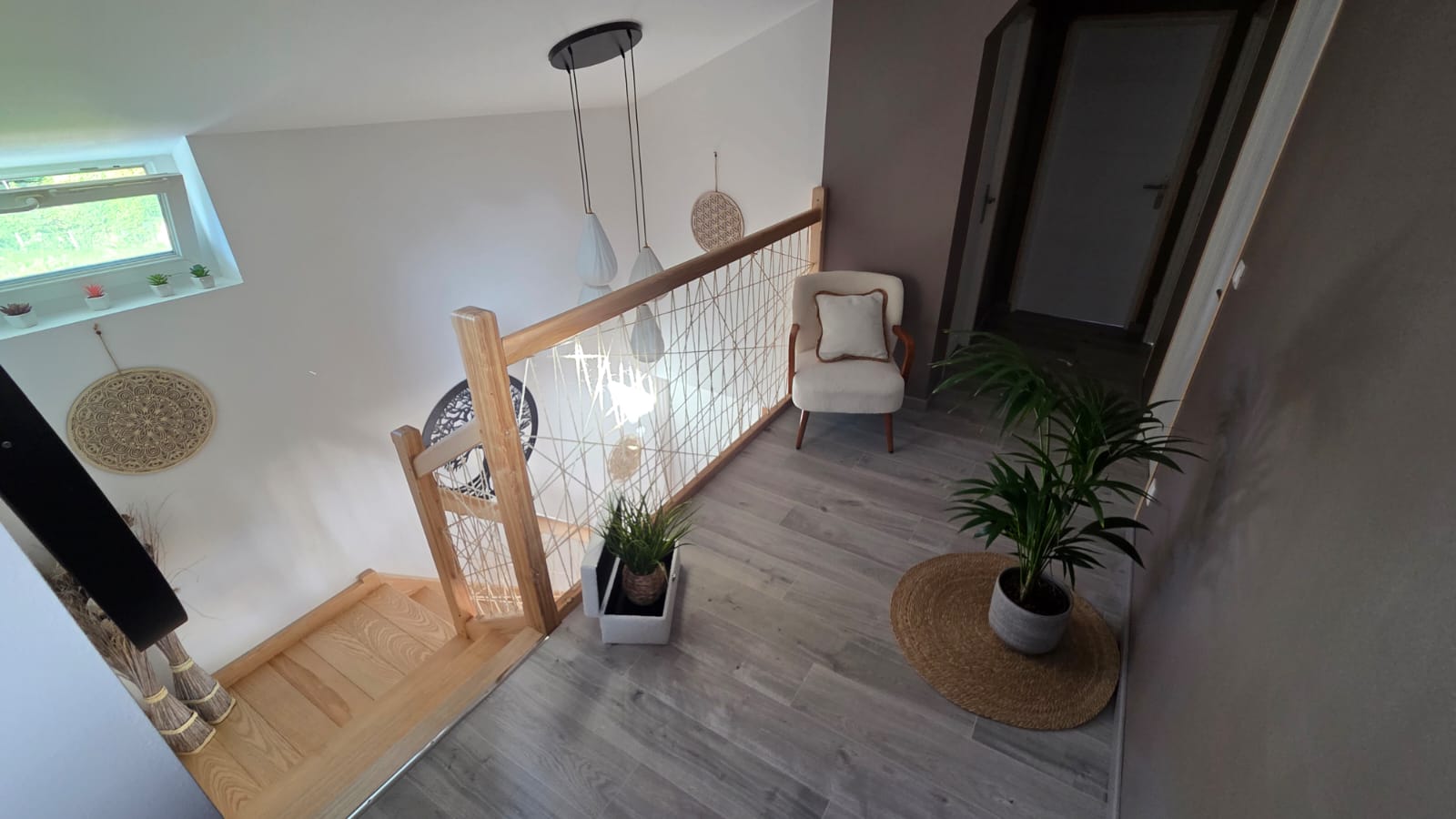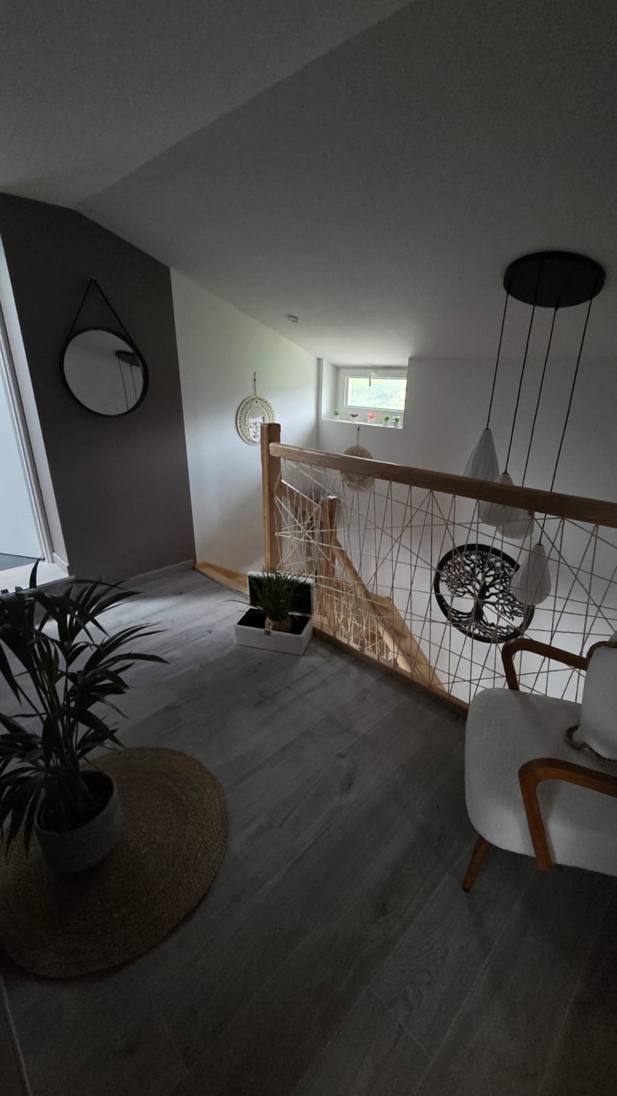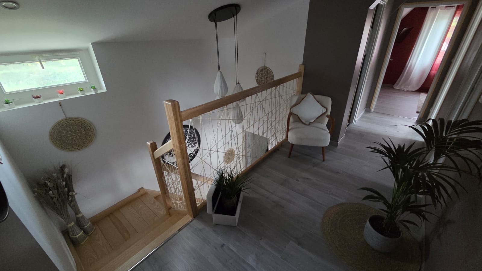 Laissez vous enveloppez par le confort de ce grand canapé moelleux, le tout baigné dans une lumière tamisée pour une ambiance ultra cocooning.